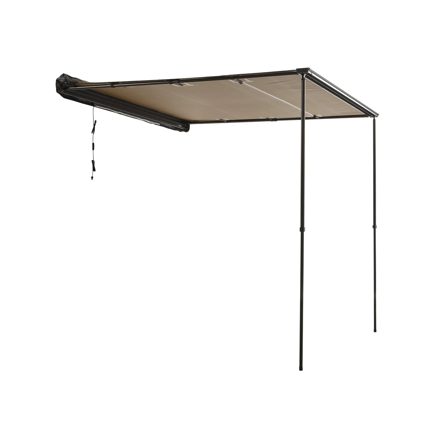 Die VICKYWOOD Markise für das Fahrzeugheck oder die Fahrzeugseite ist ein Must-Have für Deinen Campingtrip und bietet Dir genügend überdachten Platz für angenehme Stunden. Ob zum Kochen, Sitzen oder geselligen Beisammensein, hier kannst Du entweder geschützt im Schatten oder trocken bei Regen ganz entspannt verweilen. Die Markise wird über ein Schienensystem an Deinem Dachträger montiert und in der Höhe verstellbare Teleskopstangen bilden das stabile Gerüst. Super easy mit den Klettlaschen den Stoff mit Stangen verbinden und schon steht Dein Unterstand nach nur wenigen Handgriffen! Optional mit Einzelwand (200 / 250 cm) oder komplettem Zeltraum erweiterbar.